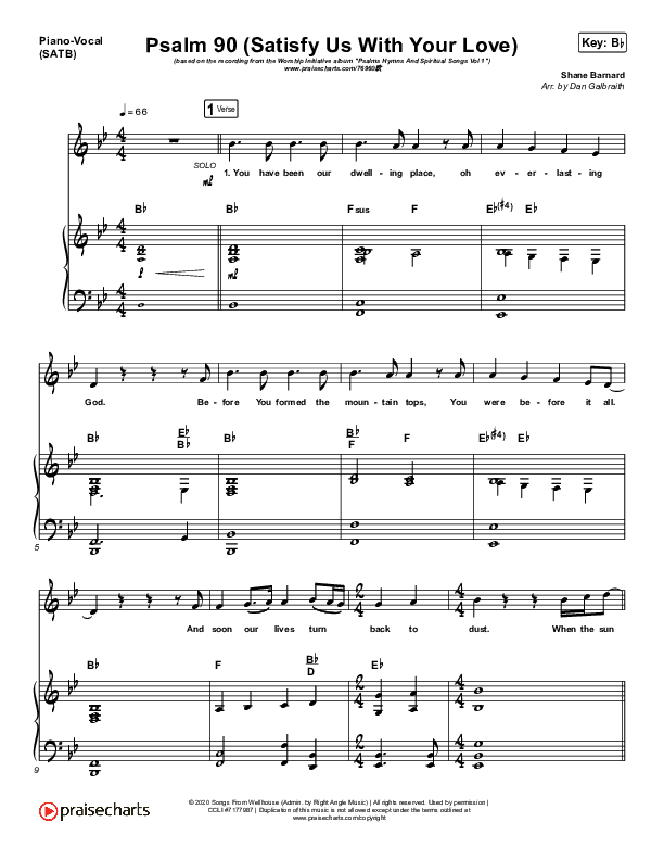 Psalm 90 Satisfy Us With Your Love Sheet Music Pdf The Worship Initiative Shane Shane Praisecharts